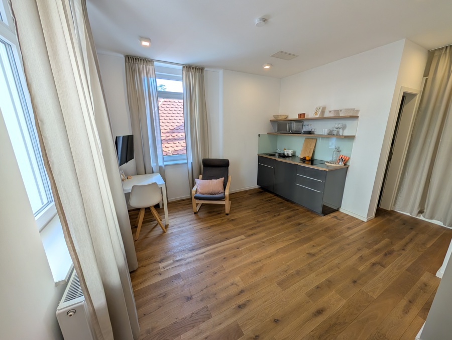 - Außerdem befinden sich unsere Appartements in einer sehr ruhigen Lage (in einer wenig befahrenen Seitenstraße) und doch zentral, nur 2 Min. Fußweg zur S-Bahn und 15 Min. Entfernung zur Stuttgarter-City